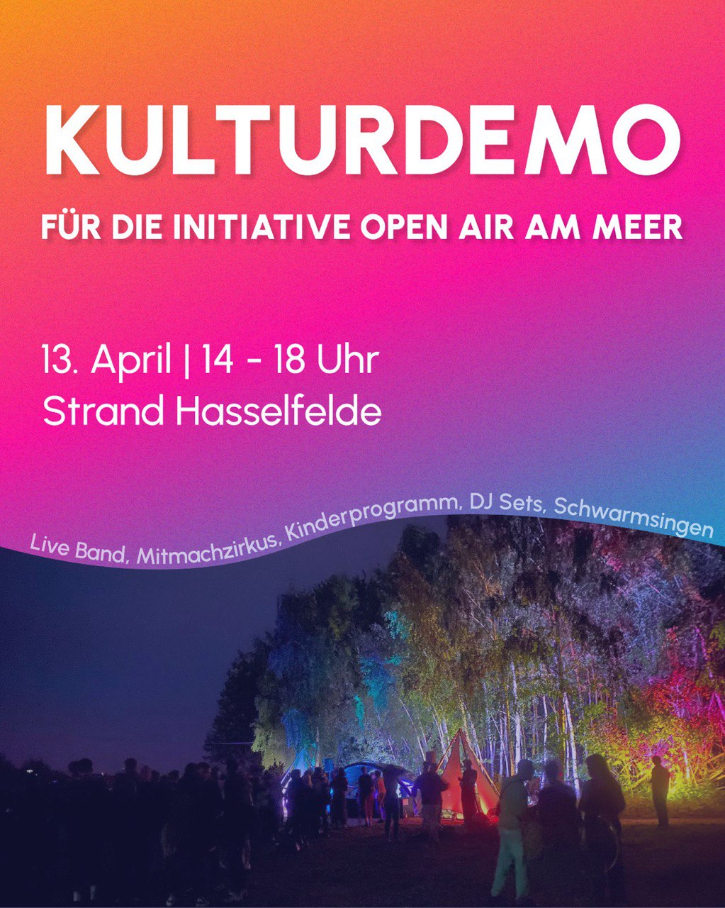 Der Gute Laune e.V. ruft am 13.04. zur Demo am Strand Hasselfelde auf: Neben Redebeiträgen, Infos und Mitmachaktionen wird mit Live Musik von Singersongwriter über Housebeats bis hin zu Jazz und HipHop Strandkultur demonstriert - Ihr braucht den Strand und der Strand braucht euch, also kommt vorbei!